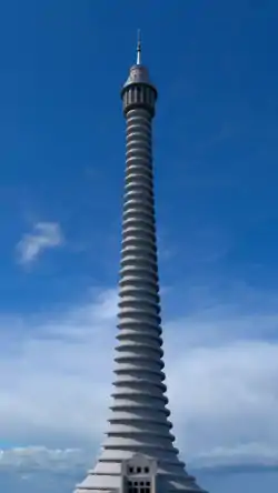 Phare du Monde ("Lighthouse of the world") was an observation tower planned for the 1937 World Fair in Paris, France. The Phare du Monde, advertised as a "Pleasure Tower Half Mile High"[1] was designed by Eugène Freyssinet, and was to be a 701-metre (2,300 feet) tall concrete tower with a light beacon and a restaurant on the top. A spiralling road on the outside of the tower shaft was to be built for driving access to a height of 1,640 feet (500 m), to a parking garage for 500 cars.[2] This focus on the car in such an eye-catching construction has been seen as proof of the car (by 1939) having become "the primary force in determining the appearance of the ordinary landscape of cities."[3] The costs were estimated to have been $2.5 million;[4] it was never built.