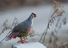 The Phasianinae (Horsfield, 1821) are a subfamily of the pheasant family (Phasianidae) of landfowl, the order Galliformes. The subfamily includes true pheasants, tragopans, grouse, turkey and similar birds.[1] Although this subfamily was considered monophyletic and separated from the partridges, francolins, and Old World quails (Perdicinae) till the early 1990s,[1][2] molecular phylogenies have shown that this placement is paraphyletic. For example, some partridges (genus Perdix) are more closely affiliated to pheasants, whereas Old World quails and partridges from the genus Alectoris are closer to junglefowls.[3][4] Due to this, Phasianinae was redefined in 2021 as containing all genera more closely allied to Phasianus than to Pavoninae or Rollulinae; several groups formerly included in Phasianinae, such as peafowl and junglefowl, were placed into Pavoninae.[5][6] Phasianinae is believed to have diverged from Pavoninae during the early Oligocene, about 30 million years ago.[7]