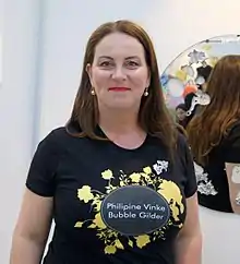 Philipine Vinke was born in 1968 in Ermelo, works and lives in Nunspeet. Vinke uses her innovative technique Bubble Gilding of which first works were created in 2015.[2] Vinke integrates modern materials, such as epoxy, with old techniques as watergilding and "verre églomisé".[3]