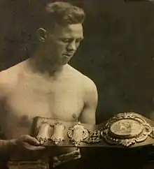 Rhondda born Phineas John, turned professional around 1926, fighting local fighters in the Glamorgan area of south Wales, mainly in Bridgend and Pontypridd.[1] Initially a flyweight fighter, one of his first notable fights was a win over Jack Glover in February 1928 at Milford Haven. A month later he was invited to fight at the National Sporting Club in London, losing on points to Dick Manning. He followed this with two fights in Liverpool in April 1928, before returning to Wales to face Minty Rose in an eliminator for the Welsh Area flyweight title. The fifteen round fight went the full distance with John being given the bout on points decision. Despite the fight being an eliminator, when the vacant title was contended on 11 August 1928 at Merthyr Tydfil, his rival was again Minty Rose, the fighter he had defeated to be given the title shot. The fight was scheduled for fifteen rounds and again went the distance, and as before John was given the points decision, making John the Welsh flyweight champion. John completed 1928 with a string of seven fights without defeat.