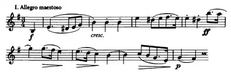 Both the first and second movements feature unusual modulations; in the opening Allegro, the exposition modulates to the parallel major, i-I, instead of the expected i-III. This tonal relation (i-III) between the second and the third theme finally occurs in the recapitulation, where an actual i-I modulation would have been expected, producing a different effect.