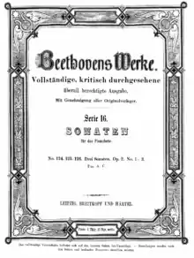 ![]() Cover of 1862 edition of Beethoven's first three piano sonatas (Breitkopf & Härtel) | |