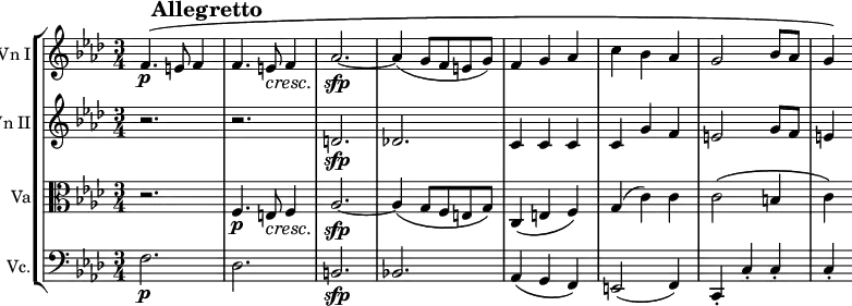 | Beethoven, Op. 14 No. 1, 2nd movement, bars 1–8, Quartet version |