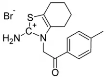 | IUPAC name 2-amino-3-[2-(4-methylphenyl)-2-oxoethyl]-2,3,4,5,6,7-hexahydro-1,3-benzothiazol-2-ylium bromide | |
