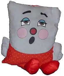 Pillow People are rectangular stuffed toys (pillows) with decal faces and stuffed hands & feet attached to their bodies. The line was started in 1986 by Penny Ekstein-Lieberman and was produced by Spring Industries (and later PCE Marketing).[2][3][4] The toys were popular during the late 1980s and generated $120 million in sales.[1] The line featured an array of different characters such as animals and people. Besides the 'people' of the line, there are also pillow pets—such as cats and dogs. Additional merchandise included bed sheets imprinted with Pillow People characters, figurines and books. There was also a Christmas TV special made as well.[1]