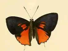 Pilodeudorix aruma, the small red playboy, is a butterfly in the family Lycaenidae. It is found in Nigeria, Cameroon, Gabon, the Republic of the Congo, the Central African Republic, the Democratic Republic of the Congo and Uganda.[2] The habitat consists of primary forests.