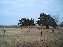 During the community's heyday in the 1940s there was a hub of activity at the main junction of the Ozark Trail and the Fort Cobb road, with a grocery store and two churches, Hopewell Missionary Baptist Church and Pine Ridge Church of Christ (founded on May 1, 1949 but later merged into the Fort Cobb Church of Christ.[9][10] By the 1950 and 1960's the community went into a time of decline with the grocery store closing and eventually the closing of the churches, sometimes by way of merger with congregations in the neighboring communities of Fort Cobb, Apache and Carnegie. And in at least one case, an entire church building was moved from Pine Ridge to Saddle Mountain, a distance of approximately 25 miles.[11]