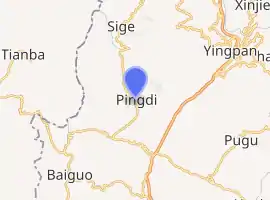 Pingdi Yi Ethnic Township (Chinese: 坪地彝族乡) is an ethnic township in Panzhou, Guizhou, China.[1] As of the 2015 census it had a population of 30,425 and an area of 152-square-kilometre (59 sq mi).