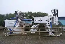 A pipe-and-cable-laying plough or moleplough[1] is a method to bury cables or pipes. The machinery is a form of a subsoiler with a single blade. It is used to lay buried services of virtually any description, for drainage, water, electricity, telecommunications, gas supply etc.. A coil of the service pipe/cable is mounted on the tractor and is led down a guide behind the blade, and is left buried behind the plough in a single operation, without the need to predig a deep trench and re-fill it.