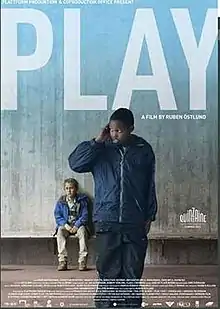 Play is a 2011 Swedish film drama directed by Ruben Östlund and written by Östlund and Erik Hemmendorff.[2] Inspired by actual court cases, it portrays a group of black boys who rob a smaller group of white boys by the means of a psychological game. The film was heavily debated in the Swedish press. It won the Nordic Council Film Prize in 2012.[3]