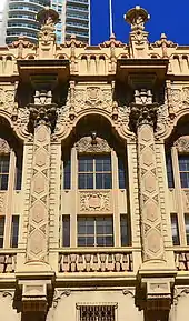 The majority of the interior detailing has been lost since the building's demise as a cinema, although remnants remain in the McDonald's restaurant that is now in sections of the original foyer.[6] These include sections of the beamed ceiling, typical Spanish motifs and coloured and stencilled floral motifs on the ceiling.[7] Sections of the polychrome stencilled ceilings in the auditorium remain.