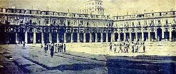 In the early morning of September 7, 1872 a fire destroyed the previous mercado de Tacón and it was necessary to install a provisional market in the Campo de Marte. The Public Works Advisory Board met on April 29, 1874 and the decision was made to replace the old market in the same place with the name Plaza de Tacón. The fruit stalls, the little shops, the clothing stores, the fur shops and a thousand other establishments that adorned the street gave each side of the building its particular character.[4] With some exceptions, the shopkeepers invented new ways to attract customers, otherwise nothing remarkable happened in the Plaza de Vapor during the working hours; as the night fell, one found the animation of the city, the electric lights, the silence on the interior courtyard and the darkness.[5]