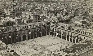 At the beginning of the 1959 Revolution Fidel Castro ordered to stop all construction in Cuba, and to have the Plaza del Vapor demolished; the Ministry of Public Health declared the Plaza del Vapor unhealthy and its vendors were resettled on the grounds of Calle Amistad between Calles Estrella and Monte where the demolished Mars and Belona dance academy had operated for years. The National Institute of Savings and Housing (INAV)[lower-alpha 4] replaced Batista's National Lottery, which had been abolished by the Revolutionary government, and a new lottery to raise money for new construction, and directed by Pastorita Núñez who projected that a new, modern building, not unlike those that were proposed by Josep Lluís Sert a year earlier in his Havana Plan Piloto of 1955-1958 would now be built in the empty lot.[45]