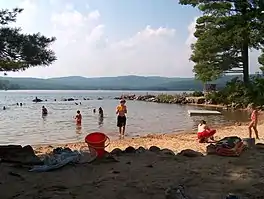 Elkins Beach is a New London town beach, which, like the village of Elkins, is located near the outlet of Pleasant Lake. This beach is the primary swimming location on the lake for town residents and their families.