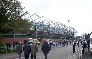 Later that month, temporary seating was once again put in place on the Grandstand, this time as a one-off for an FA Cup 3rd round replay vs Liverpool.[14] The seating was kept in place for the next home match, a League 2 game vs Devon rivals Exeter City, but tickets were not on sale to the general public. Shortly after this game, the seating was removed.[15]