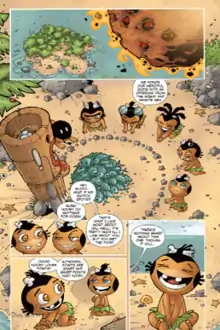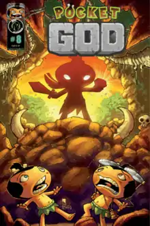Pocket God is a series of digital and paperback[1] comic books–strips, published and marketed by Ape Entertainment and iVerse Media, released for iOS devices, and available as a print on August 3, 2010.[2] The comic is created and plotted by Dave Castelnuovo and Allan Dye, written by Jason M. Burns and drawn by Rolando Mallada. It describes in the comic about "an indestructible race of people who inhabit a mysterious island and are continuously (and comically) tortured by their mischievous gods". The comic is based on the best selling iOS application Pocket God, created by Bolt Creative's Allan Dye and Dave Castelnuovo. The tribe, 'Ookga Chaka', is based also off the game, with the Pygmies, Ooga, Klik, Klak, Booga, Dooby, and Nooby.