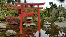 The prominent feature of the Japanese Garden is the Pagoda, built in 1914 as a streetcar station. When buses replaced street cars throughout the West, the Pagoda became a waiting area for buses in 1938. In 1963 it was transformed into a center for flower shows and social gatherings. The Pagoda and Lodge were refurbished in 1988. The Pagoda and Lodge are rented throughout the year for weddings and receptions. In 2011 the Pagoda was heavily damaged in an arson fire but beautifully restored. The Pagoda in 2001 was also the prior home of the figurines from never never land before the arson fire.