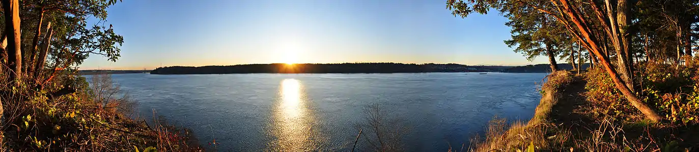 As the largest urban park in Pierce County, the network of roads and trails weaving through the forest preserve provides a quiet retreat for joggers, cyclists, hikers. Trails are marked with symbols. Portions of The Five Mile Drive are closed to cars on Saturday. There are many hiking trails along Pt. Defiance's cliffs, that have sweeping views of Vashon Island, Dalco Passage, Gig Harbor, and the Tacoma Narrows Bridge. The road network also passes by Fort Nisqually.