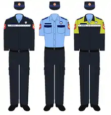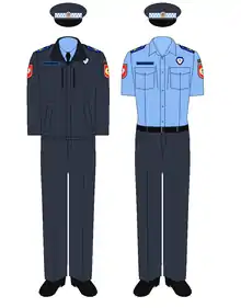 Uniforms had changed several times. Last time ranks and uniform were changed in 2018 when blue peaked cap with a blue-white checkered ribbon as those in London Metropolitan Police replaced the field cap.[34] New police ranks added are:[35]
