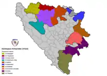 Police Administration Prijedor (Serbian: Полицијска управа Приједор, Policijska uprava Prijedor, short ПУ ПД, PU PD) is located in the Prijedor region, and it contains the City of Prijedor, Kozarska Dubica, Kostajnica, Novi Grad, Krupa na Uni, and Oštra Luka municipalities. There are ten police stations.[16]