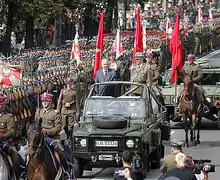 The Polish armed forces has consistently held two yearly military parades (Polish: Defilada wojskowa) on Armed Forces Day and National Independence Day. These parades take place on Ujazdów Avenue and near the Tomb of the Unknown Soldier on Piłsudski Square respectively. The Armed Forces Day Parade was introduced in 2007 and 2008 as first grand military parades since the holiday was reinstated and have been held yearly since 2013. The first Polish military parade took place on 17 January 1945 and as of 2019, the 3 May Constitution Day parade was officially reinstated.