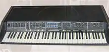 The design of the Polymoog is a hybrid of the electronic organ and the synthesizer using divide-down technology, much like other string synthesizers of the time. Unlike later 1970s polyphonic synthesizers, such as the Yamaha CS-80 and Sequential Circuits Prophet-5, the Polymoog cannot create each voice from individual oscillators and filters, or store sounds programmed by the user.[4] Although criticized for its limited programmability, high purchase price of $5295 and reliability issues, the Polymoog Synthesizer was popular with musicians of the period, and its unlimited polyphony was considered revolutionary upon its initial release.[1][5]