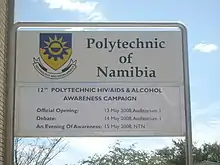 A sign at the then Polytechnic of Namibia with the old logo in 2008