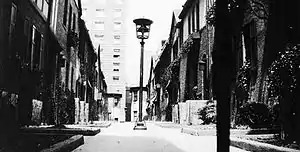 Pomander Walk was built in 1921 by nightclub impresario Thomas J. Healy who planned to build a major hotel on the site. According to city historian Christopher Gray, when Healy was unable to get financing for a hotel, he built the houses that stand on the site today, apparently to provide a temporary cash-flow while he waited to raze them and build the hotel.[4] It was designed by the New York architecture firm King and Campbell.[8] Healy died in 1927, however, so Pomander Walk remained.[9]