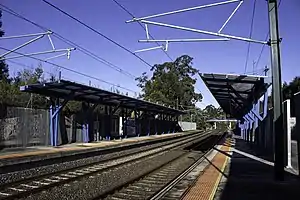 The railway stop has two platforms with video surveillance, shelters and electronic information boards indicating train arrivals and departures, a device for emergency calls and a clock.[5]