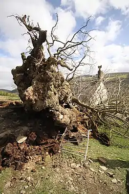 The Pontfadog Oak was a sessile oak tree (Quercus petraea) that stood on Cilcochwyn farm above the village of Pontfadog, in the Ceiriog Valley west of Chirk in the county borough of Wrexham, Wales, until it was blown over in the early hours of 18 April 2013.[1][2] At the time it was reputed to be the oldest and largest oak tree in the United Kingdom.[3]