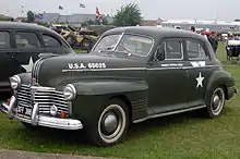 The Pontiac Torpedo was a full-sized car produced by Pontiac from the 1940 through the 1948 model year (war years excepted). When released, it was the biggest Pontiac, used an 8-cylinder engine, and it had more standard features than other Pontiacs. Although the Torpedo name was exclusive to the highest line of Pontiacs in 1940, in 1941 the name was applied to all Pontiacs in three separate lines. The Custom Torpedoes were now top-of-the-line name, while the DeLuxe Torpedo became the base line, and the Streamline Torpedo became the middle line of Pontiacs. All Torpedo models could be had with either a 6-cylinder or 8-cylinder engine beginning in 1941. From 1942 to 1948 the Torpedo name designated only the base line of Pontiacs.[1] The Torpedo was replaced by the Pontiac Chieftain in 1949. It was with this generation that all GM vehicles experienced increased width dimensions to accommodate three passengers on the front bench seat and an additional three passengers on rear bench seat installed vehicles. This was accomplished with the deletion of running board thereby adding additional room inside the passenger compartment.[2]