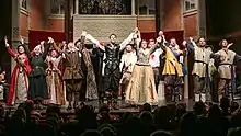 The first season, featuring the Pop-up Globe Theatre Company performing Twelfth Night and Romeo and Juliet, with independent visiting productions of Titus Andronicus, The Tempest, Much Ado About Nothing, Henry V, Antony and Cleopatra and Hamlet, opened on 18 February 2016, as part of the commemorations of the quatercentenary of Shakespeare’s death.[5] Over 100,000 tickets were sold during a 12-week season,[6] making it the largest Shakespeare festival in the Southern Hemisphere.