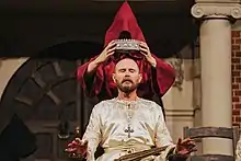 The Somerset’s Company began rehearsals on 1 October 2018, opening The Taming of the Shrew on 16 November 2018 and Richard III on 17 November 2018. The Taming of the Shrew (directed by Brigid Costello & David Lawrence) featured Natasha Daniel and Jamie Irvine as Katherina and Petruchio and was presented in 17th century Italian dress, with a rewritten version of the play’s original framing device—in this case, Christopher Sly was a drunken audience member who passed out in the yard so that the cast could enlist the audience’s support in their plan to gull him by dressing him in Jacobean attire and insisting when he regained consciousness that he was in England in 1616. Richard III (directed by Miles Gregory) starred Stephen Butterworth in the title role and featured authentic medieval pageantry, lavish Jacobean costumes, and a recreation of the Battle of Bosworth that included armies fighting with pikes and firing arquebuses.