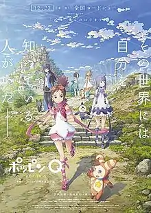 Pop in Q (ポッピンQ, PoppinQ) is a Japanese animated dance film directed by Naoki Miyahara, produced by Toei Animation, written by Shūko Arai and starring Asami Seto, Shiori Izawa, Atsumi Tanezaki, Ari Ozawa, and Tomoyo Kurosawa.[1] It was released in Japan by Toei on December 23, 2016.[2][3] A crowdfunding campaign for a sequel novella was launched on October 28, 2019. The goal was reached the following day.[4][5] A crowdfunding campaign for a second novella was launched on December 7, 2020. The goal was reached on January 25, 2021.[6]