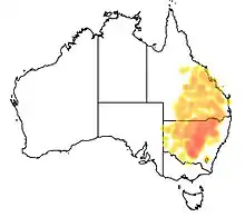 Poplar box is widespread in New South Wales where it is found on the western plains north from Narrandera and Pooncarie, extending into Queensland as far as Rockhampton. It is most abundant in the northern and central sections on the western plains, becoming gradually less common the New South Wales far west, where it is restricted to areas that are more reliably watered and sandier.[10]