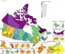 This is a list of Canada's 338 federal electoral districts (also known as ridings in Canadian English) as defined by the 2013 Representation Order, which came into effect on August 2, 2015. The ridings are organized by province.