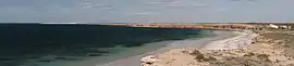 Port Gibbon consists of land on the coastline with Spencer Gulf which extends from a headland called Point Gibbon (formerly Point Price) in the south for a distance of about 5 kilometres (3.1 mi) along the southern end of an unnamed bay whose northern end terminates at a headland called The Knob in the adjoining locality of Cowell. The coastline consists of a series of beaches backing onto a cliff line of “red bluffs composed of Pleistocene alluvium” with heights up to 10 metres (33 ft). A settlement is located at the middle of the bay behind the cliff line. A road runs along the coast both south and north of the settlement.[12][13][14]