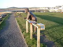 A statue of a fisherman overlooks the harbour: once made of concrete, it has been cast in bronze. The statue was part-funded by the millennium lottery fund. In front of the statue is a plaque with the first verse of the poem Leisure by W. H. Davies.