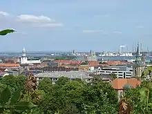 View of the Port of Aalborg, Denmark from the hill Skovbakken