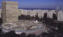 Similarly, in the early part of the 1960s, a development in Buenos Aires had a comparable effect on the future urbanization of Portela; the development was geometric in design, with composite linear roadways around a central centre.[2] In Lisbon, a similar layout was achieved by a New York architect, who was commissioned to construct a development that centred on a large commercial mall in the 1970s (the first of its type to be completed using urban planning concepts in the capital).[2] The idea was to organize apartment blocks around a central commercial structure, in order to create a pole of socio-economic activities. Constituted in 1985, the civil parish of Portela has become a Portuguese reference for urban architecture.