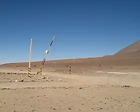 Portezuelo del Cajón, also known as Hito Cajón,[1] is a mountain pass on the border between Chile and Bolivia, located on the lower southeast flank of Juriques volcano, close to the Licancabur volcano. While Bolivian customs are completed at the top of the pass, Chilean customs are completed in the town of San Pedro de Atacama, 45 kilometres (28 mi) away.[2] The road over the pass begins at the junction with Chile Route 27, close to Cerro Toco.