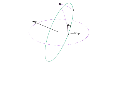 Solving this for sin θs,t and insertion in the previous formula gives an expression for the tangent of the position angle,