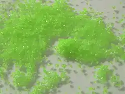 Pentahydrate and octahydrate have monoclinic crystal structures with densities of 3.713 and 2.813 g/cm3, respectively. The octahydrate crystals are optically biaxial, with refractive index components of nα = 1.5399, nβ = 1.5494 and nγ = 1.5607.[1] They belong to the space group C12/c1 (No. 15) and have lattice constants a = 1370.0(2) pm, b = 686.1(1) pm, c = 1845.3(2) pm, β = 102.80(1)° and Z = 4.[3]