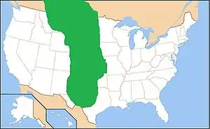 Squash and beans were cultivated in what is now the United States, independent of Mesoamerica.[6] Maize is a tropical crop first cultivated in Mexico several thousand years ago, which found its way northward to what is now the United States around one thousand years ago. Maize agriculture began on the Great Plains by AD 900, initiating the Southern Plains villagers period of western Oklahoma and Texas. It probably came about as an extension westward and northward of the Caddoan cultures of eastern Texas. The Plains Village culture consisted of hamlets and semi-permanent villages along major rivers such as the Red, Washita, and Canadian. Subsistence was a combination of agriculture and hunting. A drying climatic trend beginning AD 1000 or 1100 may have tipped the subsistence scale more toward hunting and less toward a dependence upon agriculture.[7] The Antelope Creek Phase of Plains villagers, dated from AD 1200 to 1450 in the Texas panhandle was influenced by the Southwestern Pueblo people of the Rio Grande valley in New Mexico.[8] The contemporaneous Apishapa culture of southeastern Colorado depended mostly upon hunting.[9] The historic descendants of the Southern Plains villagers are possibly the Wichita and Pawnee Indians.[10]