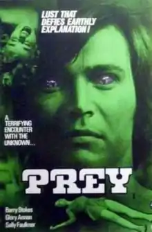 Prey (known as Alien Prey in some markets)[1][2] is a 1977 British independent science fiction horror film produced by Terry Marcel and directed by Norman J. Warren. The plot concerns a carnivorous alien (Barry Stokes) landing on Earth and befriending a lesbian couple (Glory Annen and Sally Faulkner) as part of his mission to evaluate humans as a source of food. It was filmed in under two weeks on a budget of less than £60,000 (approximately £381,100 in 2020) in various locations near Shepperton Studios in Surrey. It had a limited distribution on release.