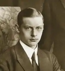 On his tenth birthday in 1916, Wilhelm was made a lieutenant in the 1st Guards Regiment, and was given the Order of the Black Eagle by his grandfather.[3] Two years later, when he was only twelve, the German monarchy was abolished. Wilhelm and his family remained in Germany, though his grandfather, the former Emperor, went into exile in the Netherlands. The former Crown Prince and his family remained in Potsdam, where Wilhelm and his younger brothers attended the local gymnasium.