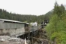 Twelve of the 17 crew of U.S. Air Force 44-92075 were found alive here in 1950, during the first lost nuclear/Broken Arrow episode of the Cold War. The plane itself flew north after the crew bailed out, crashing on Mount Kologet, east of the Nass River to the northwest of Hazelton.