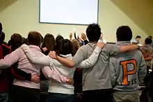 The Princeton Christian Fellowship (PCF), formerly the Princeton Evangelical Fellowship (PEF), is a nondenominational Christian ministry at Princeton University whose purpose is "to help undergraduate and graduate students ... grow as believers and followers of Jesus Christ ... [and] to let the rest of the University community know the full message of Christianity so that others can come to believe and have faith in Jesus Christ."[2] Founded in 1931 by Dr. Donald B. Fullerton, a member of the Princeton University Class of 1913, the PCF is one of the oldest campus ministries of its type, predating the founding of Cru and Intervarsity by a decade or more.[3] PCF is one of the largest student organizations at Princeton University, and is currently led by the Rev. Chris Sallade, a member of the Princeton Class of 1994.[4]