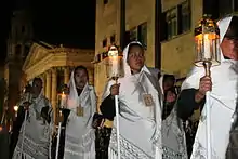 Organized by the Tradiciones Potosinas association,[1] the procession commemorates as an act of mourning the Passion of Christ.[2][3] It is a reenactment of the Stations of the Cross, with each station marked by a heavy platform with the relevant images.[4] This procession is one of the most important Holy Week observances in Mexico, one of the most important religious events for the state of San Luis Potosí and emblematic for the city.[1][2][5] It is also a major tourist event, attractive over 160,000 visitors to the city, with about fifteen percent coming from outside of Mexico.[5][6][7]