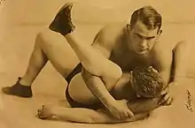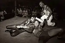 Tommy Seigler applies a hold to Nick Kozak while a referee looks on